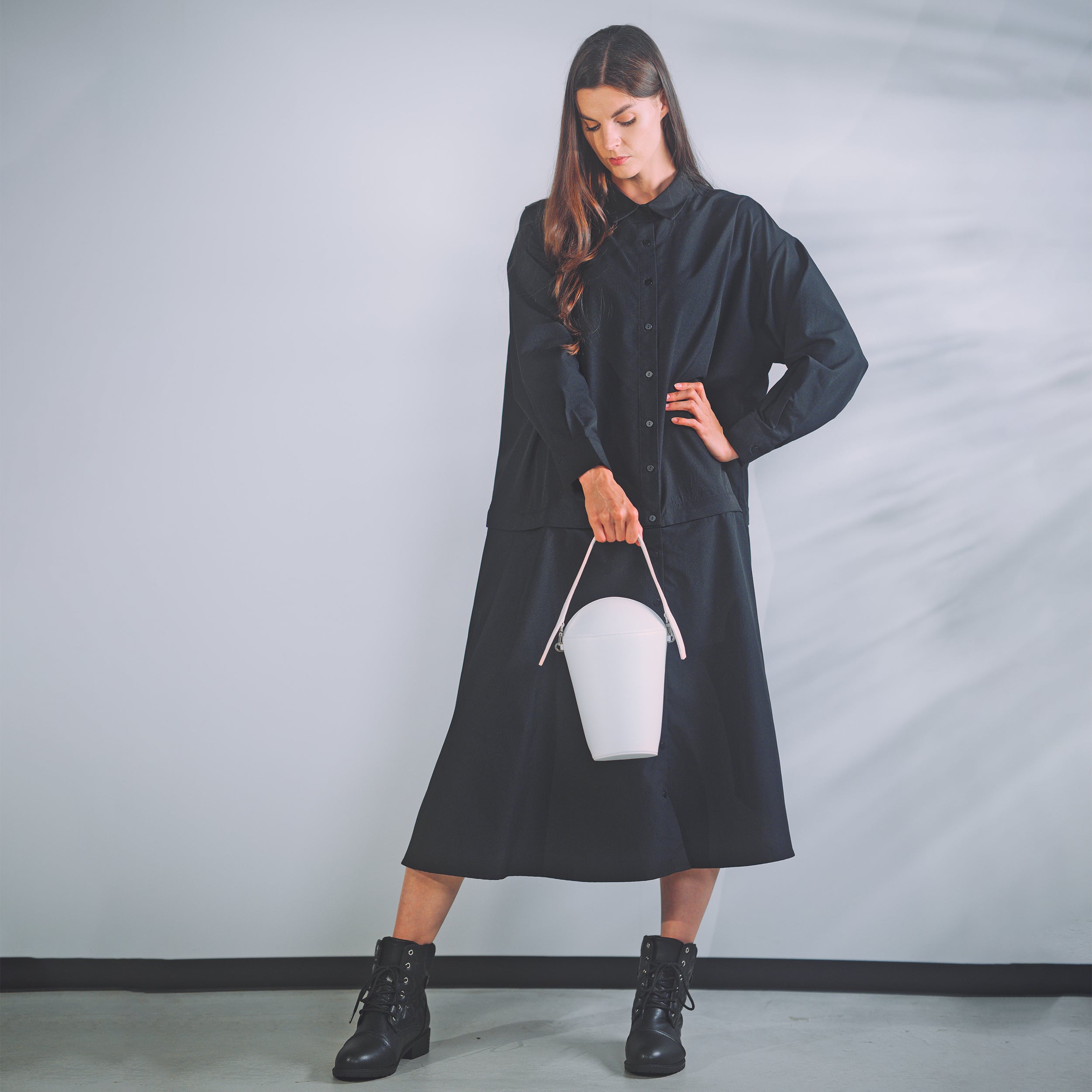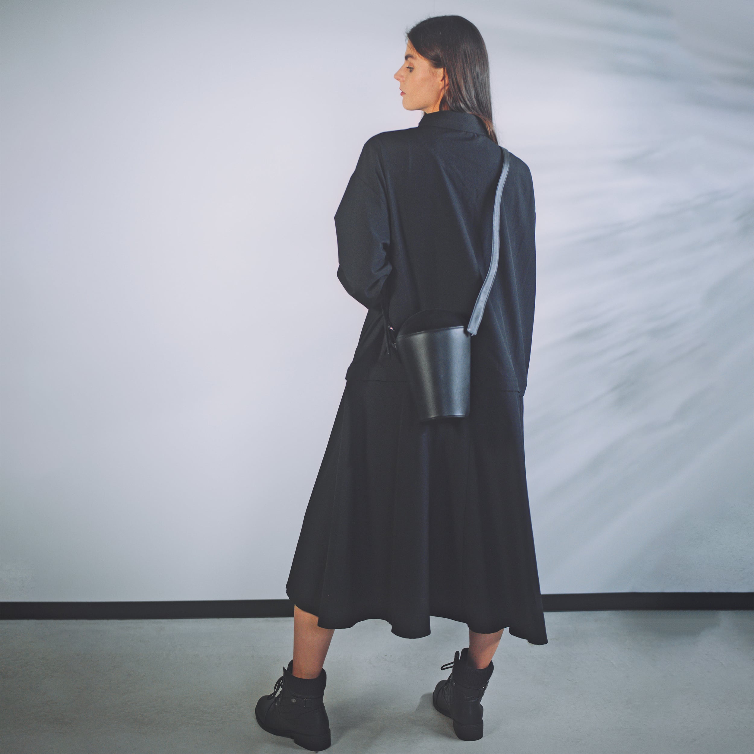 輪郭線やシルエットに焦点をあて、そこに在ることで空間に境界を生む佇まいをテーマにしています。工芸的な立体の陰影。その静かな存在感を、パターンとして落とし込みました。縫い目に浮かぶ光の線や、レザーの表情が、視覚と想像を刺激します。遊び心のあるストラップ、控えめな金具、鮮やかな内装。その姿はどこか儚げで、アンバランスを内包した魅力をまとっています。
