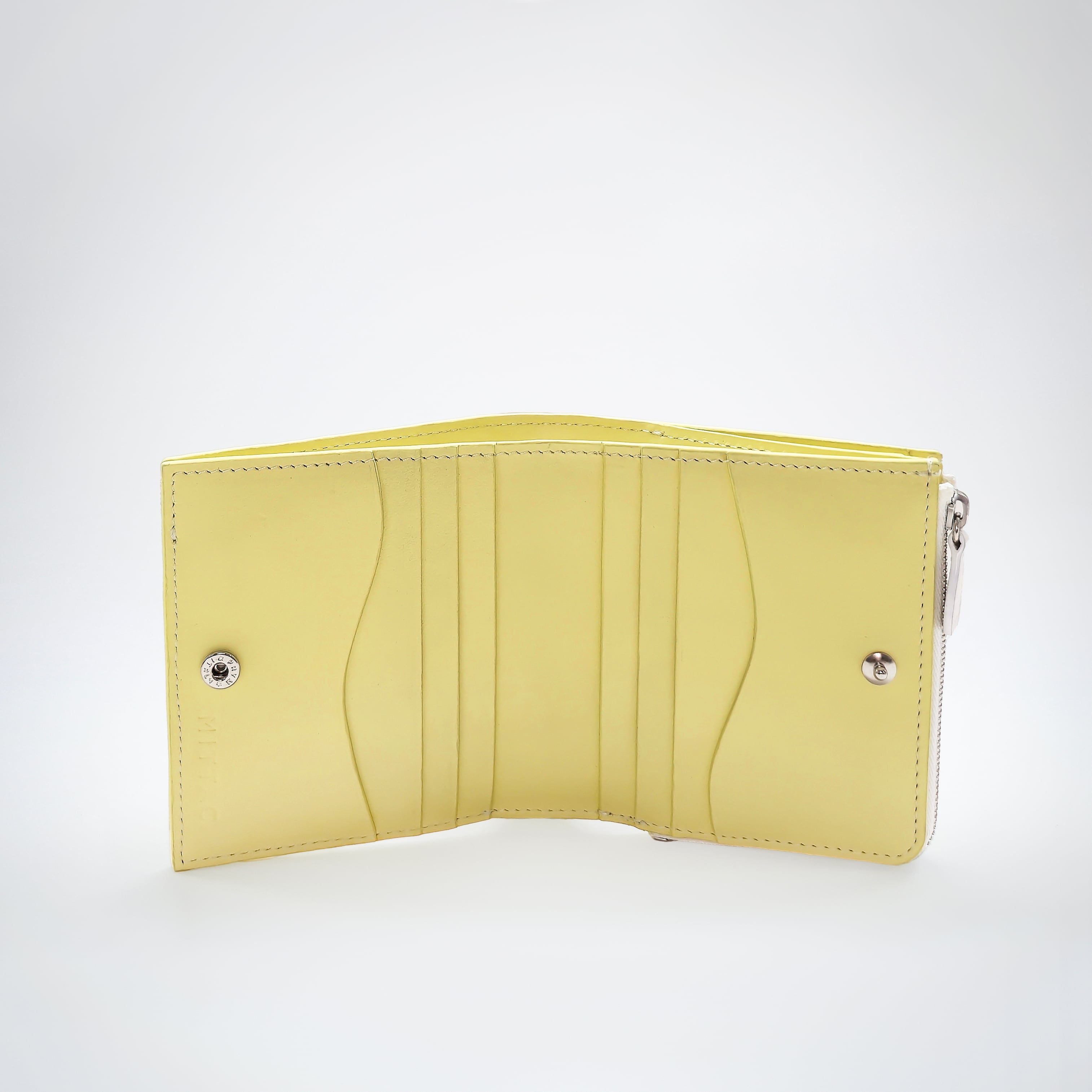「Weave(ウィーヴ)」パターンの表情が際立つ、二つ折りタイプの財布です。片手に収まるサイズ感でありながら、内装には8段のカードポケット、Lファスナーのコイン収納、札入れを備えています。ポイントに曲線があしらわれ、細部までマイスターの手仕事を感じさせます。