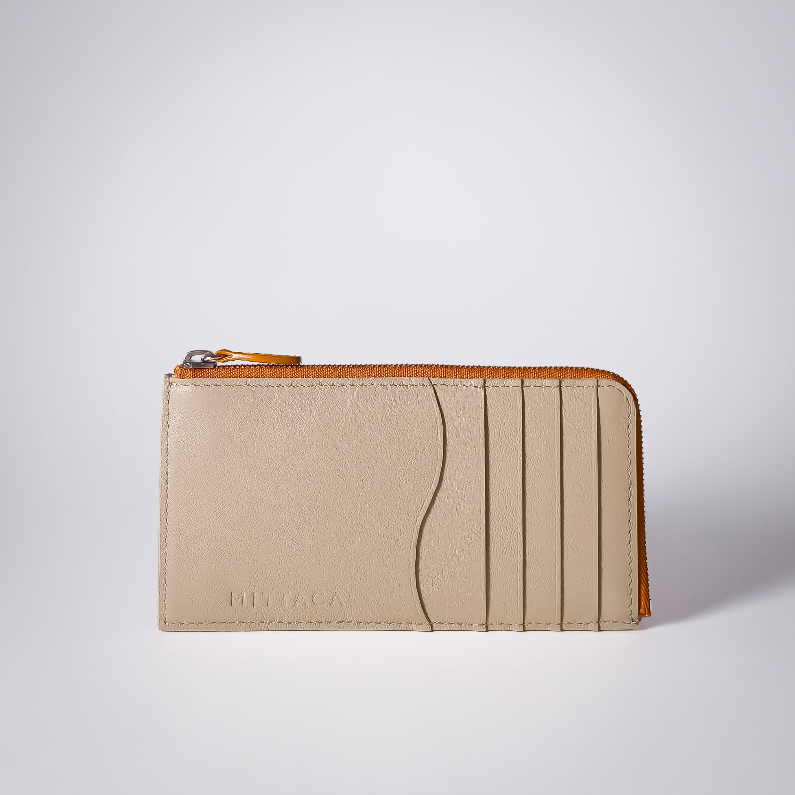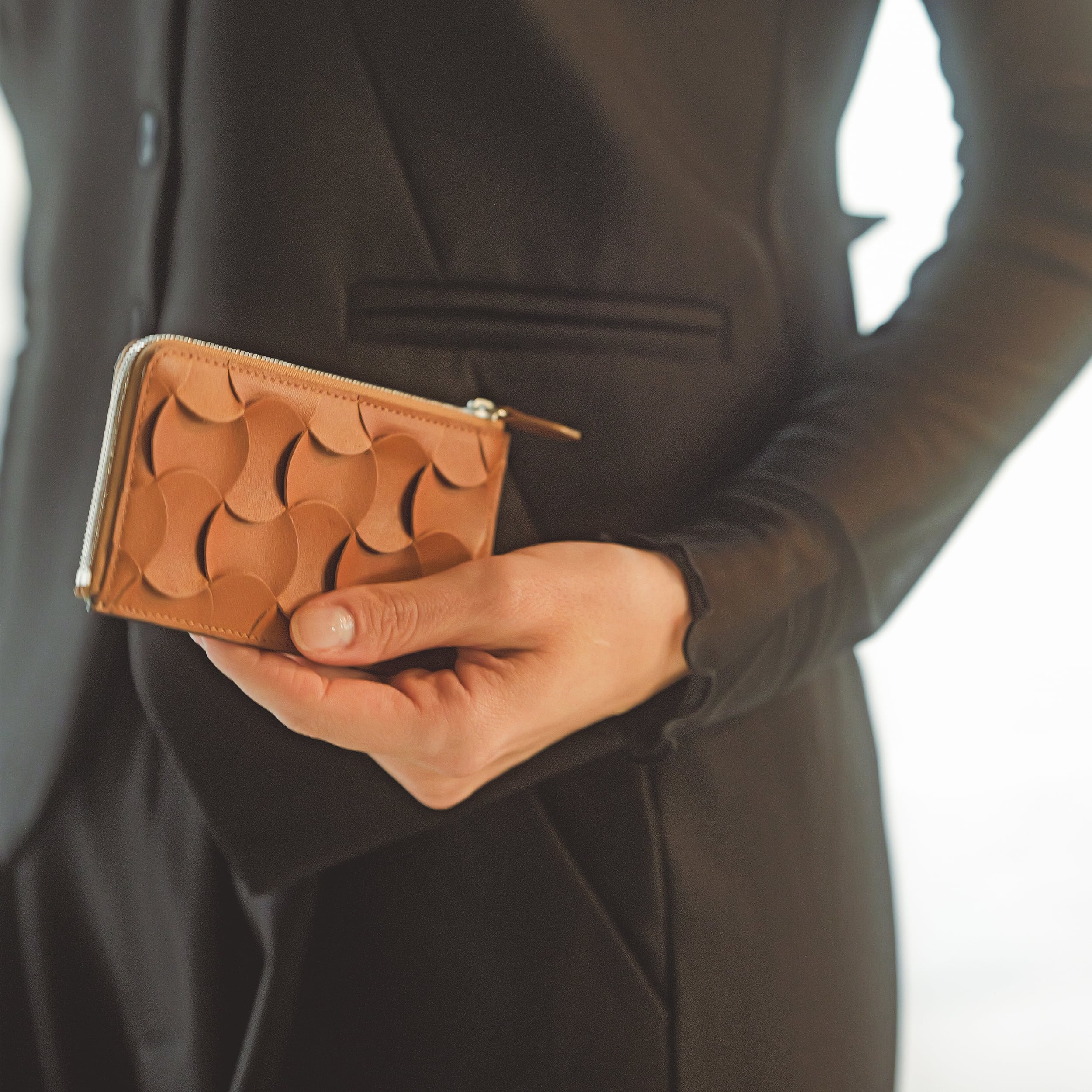 「Weave(ウィーヴ)」パターンの表情が際立つ、スマートタイプの財布です。5段のカードポケットと、Lファスナーのポケットを備え、ポイントに曲線があしらわれています。キャッシュレス等、ミニマルな収納ニーズにフィットする作品です。