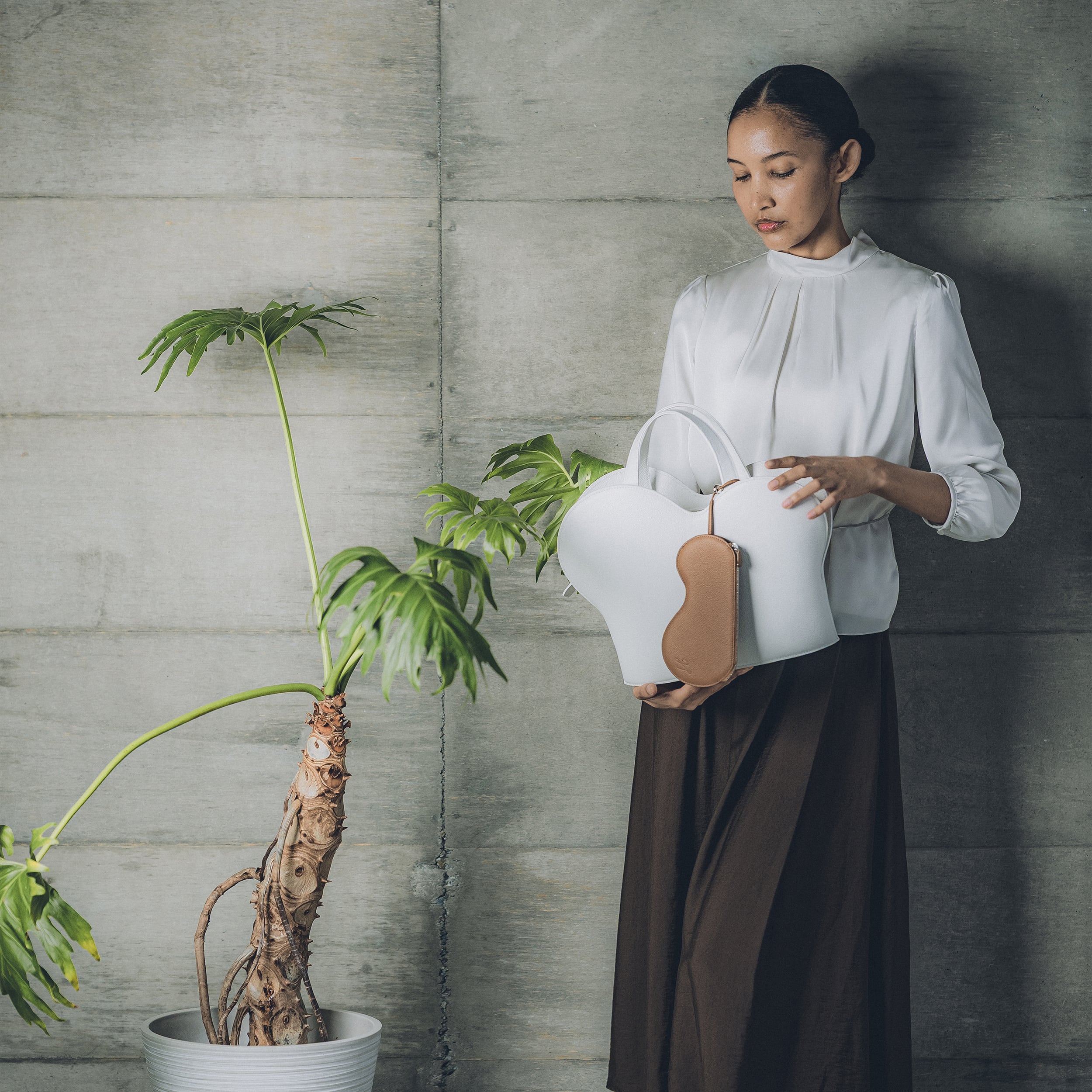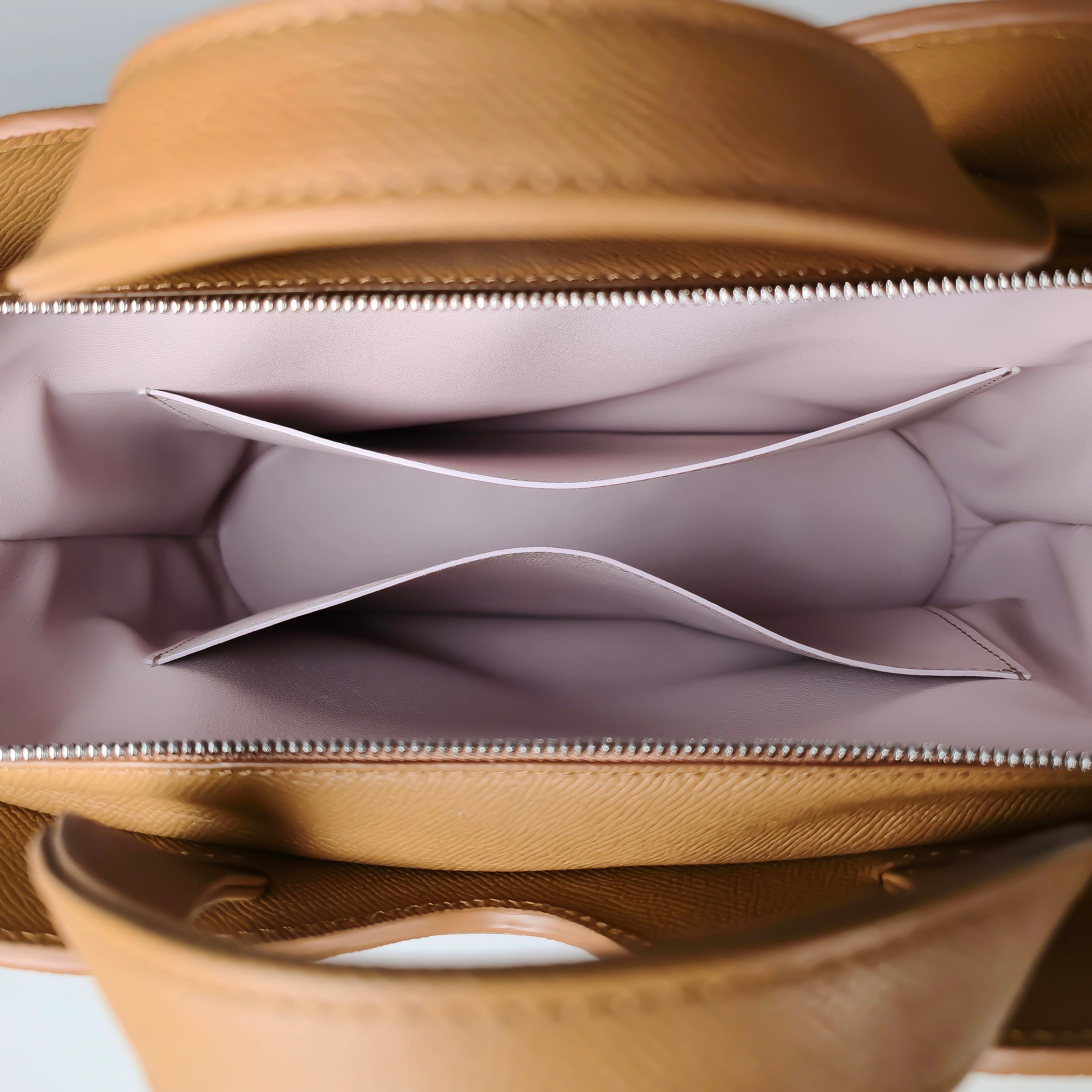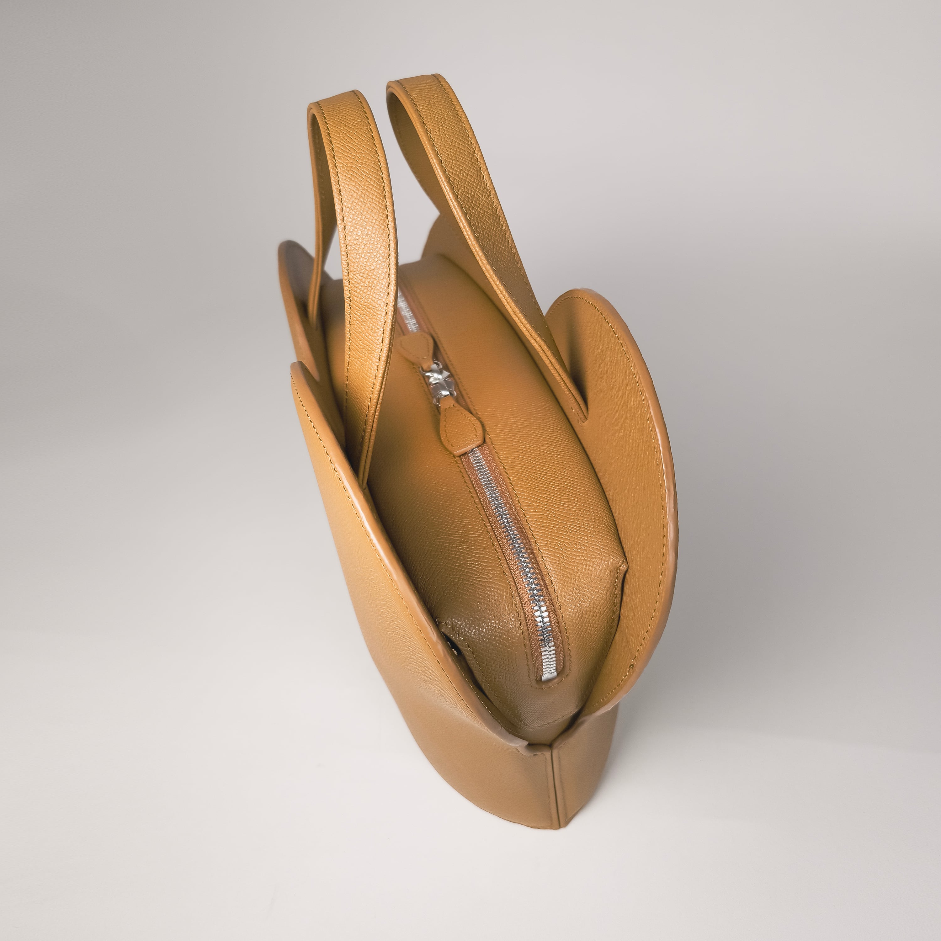 Bayという名の通り、湾曲したカーブ、たおやかなシルエットが目を引くデザインのトートバッグ。ボディには膨らみを出しながら、底面へ向けてシャープになる印象を追求しています。上部のファスナーで開閉し、内装には2つのポケットを備えています。造形を細かく調整しながら、試作を繰り返した職人技が宿ります。
