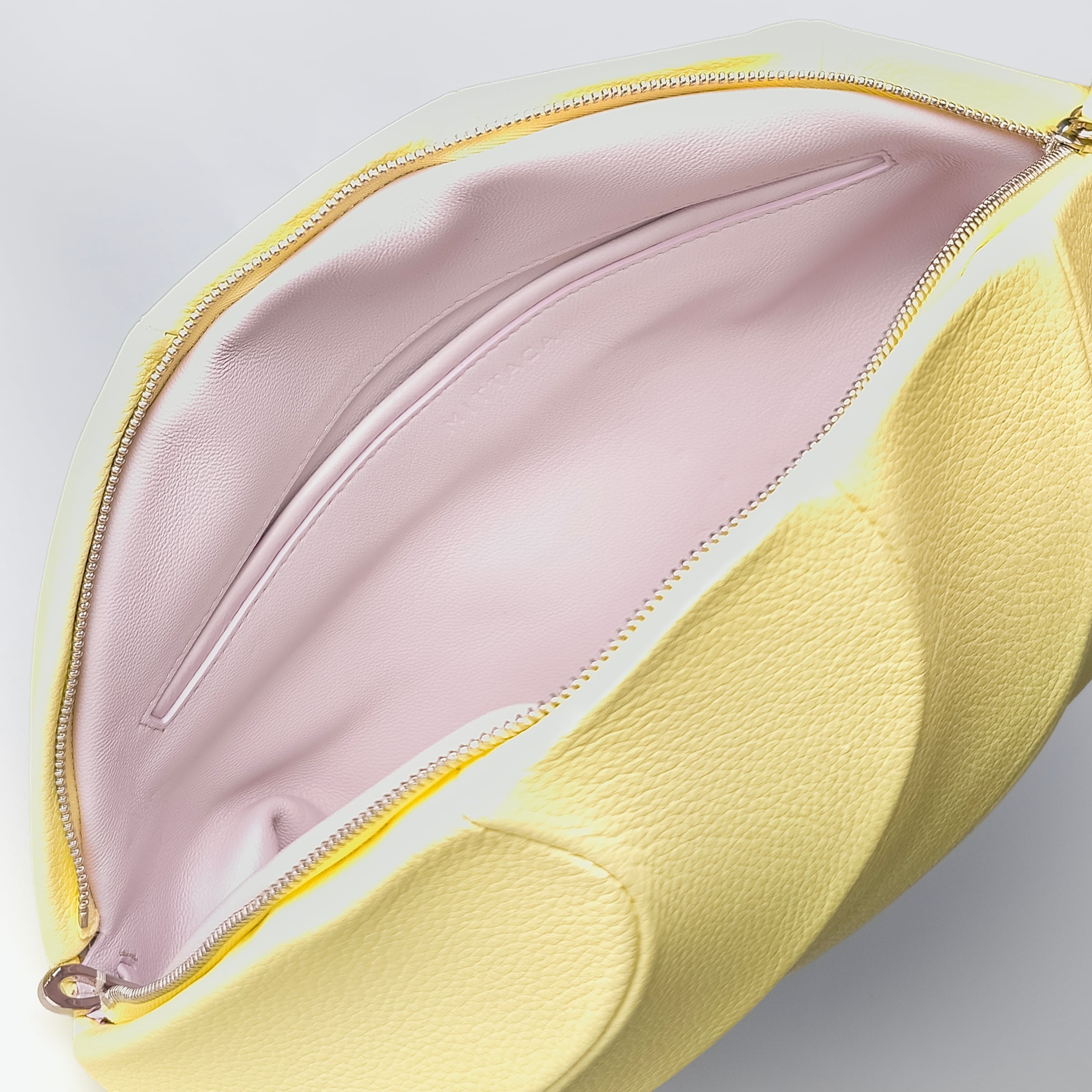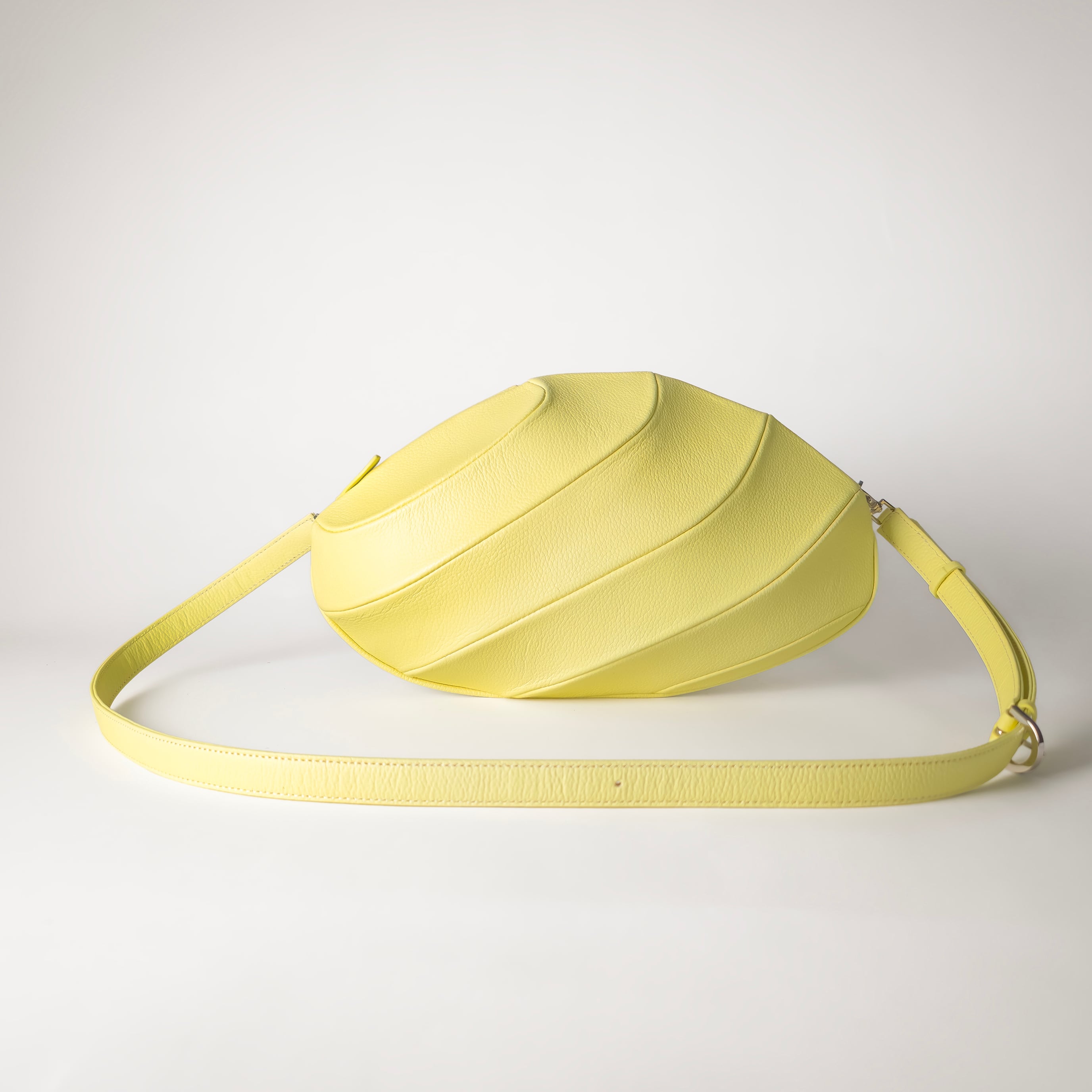 MITTACAの美意識のニュアンスを受け取り、メルティングポット的にミックスさせ、スケッチを描くところから開始。流麗な抽象彫刻やプリミティブなモノリスを創作する意識でフォルムを創造し、まず別素材で立体造形物を製作。そこからパターン(型紙)を起こし、バッグに落とし込んでいく工程へ。ファインアート作品を創作するように、既存の枠にとらわれないデザインを追求しました。