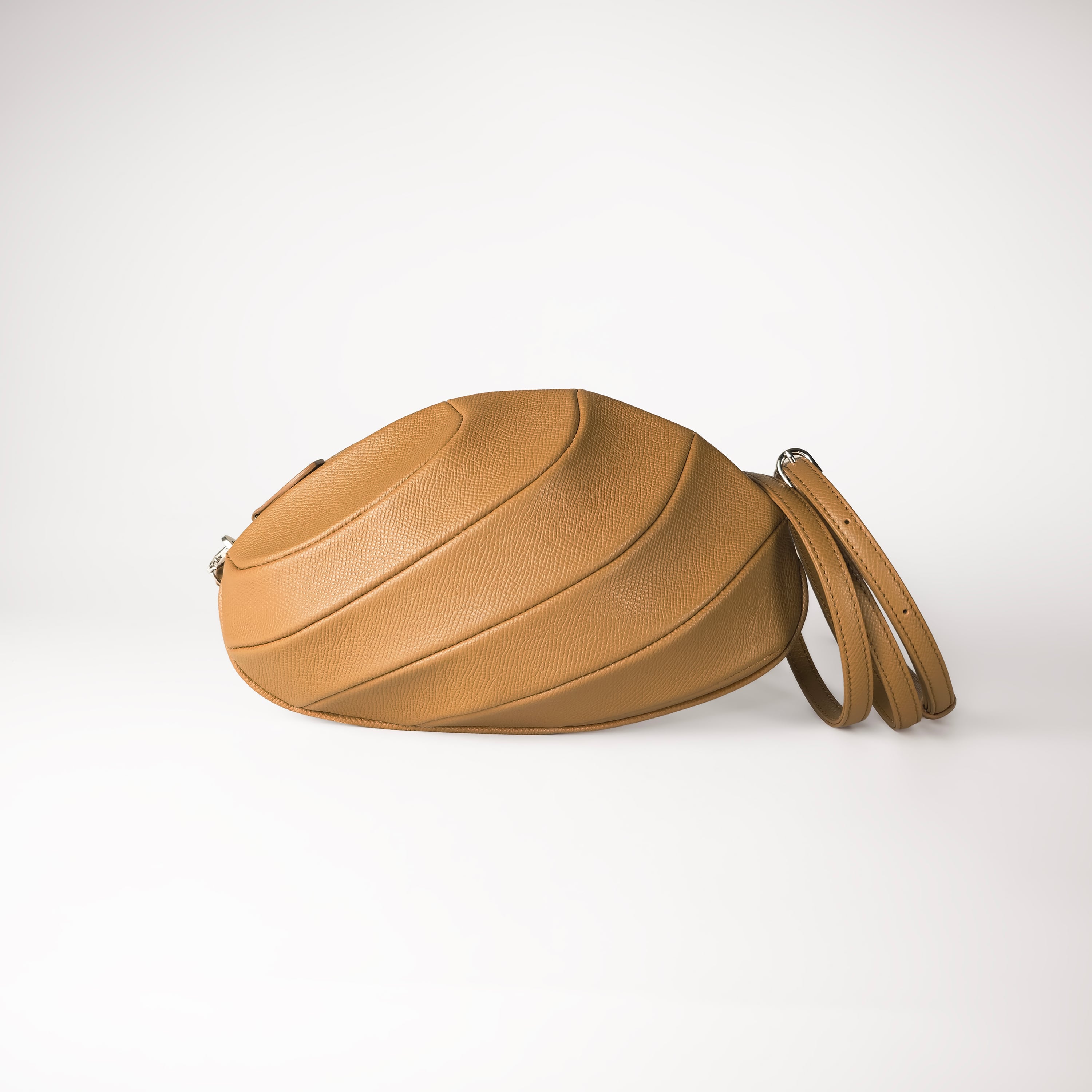 MITTACAの美意識のニュアンスを受け取り、メルティングポット的にミックスさせ、スケッチを描くところから開始。流麗な抽象彫刻やプリミティブなモノリスを創作する意識でフォルムを創造し、まず別素材で立体造形物を製作。そこからパターン(型紙)を起こし、バッグに落とし込んでいく工程へ。ファインアート作品を創作するように、既存の枠にとらわれないデザインを追求しました。