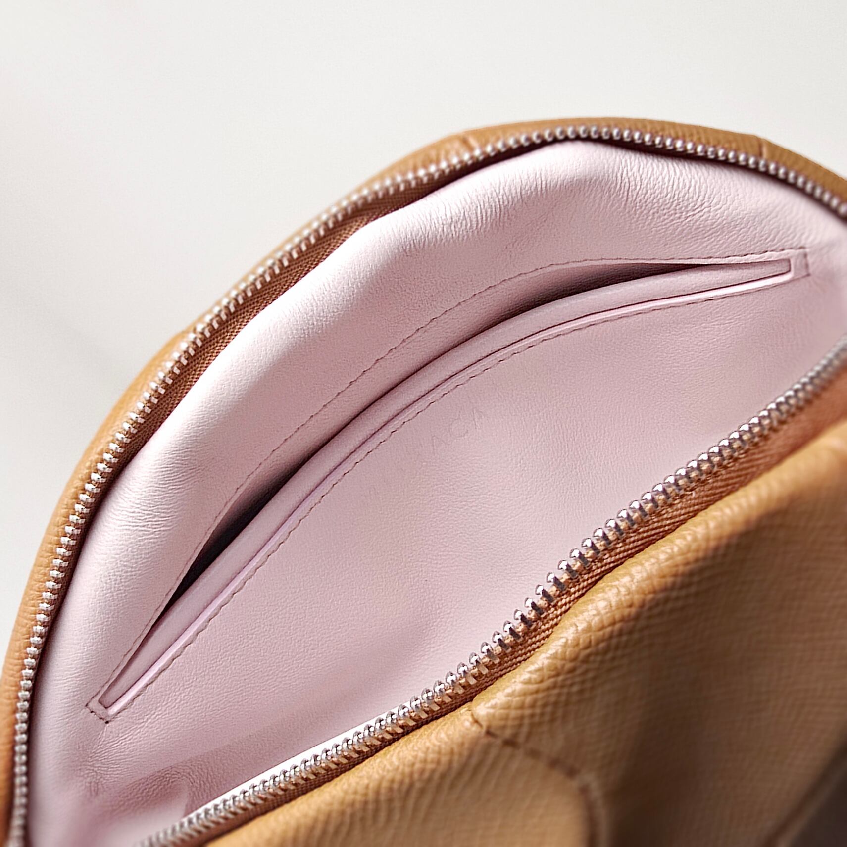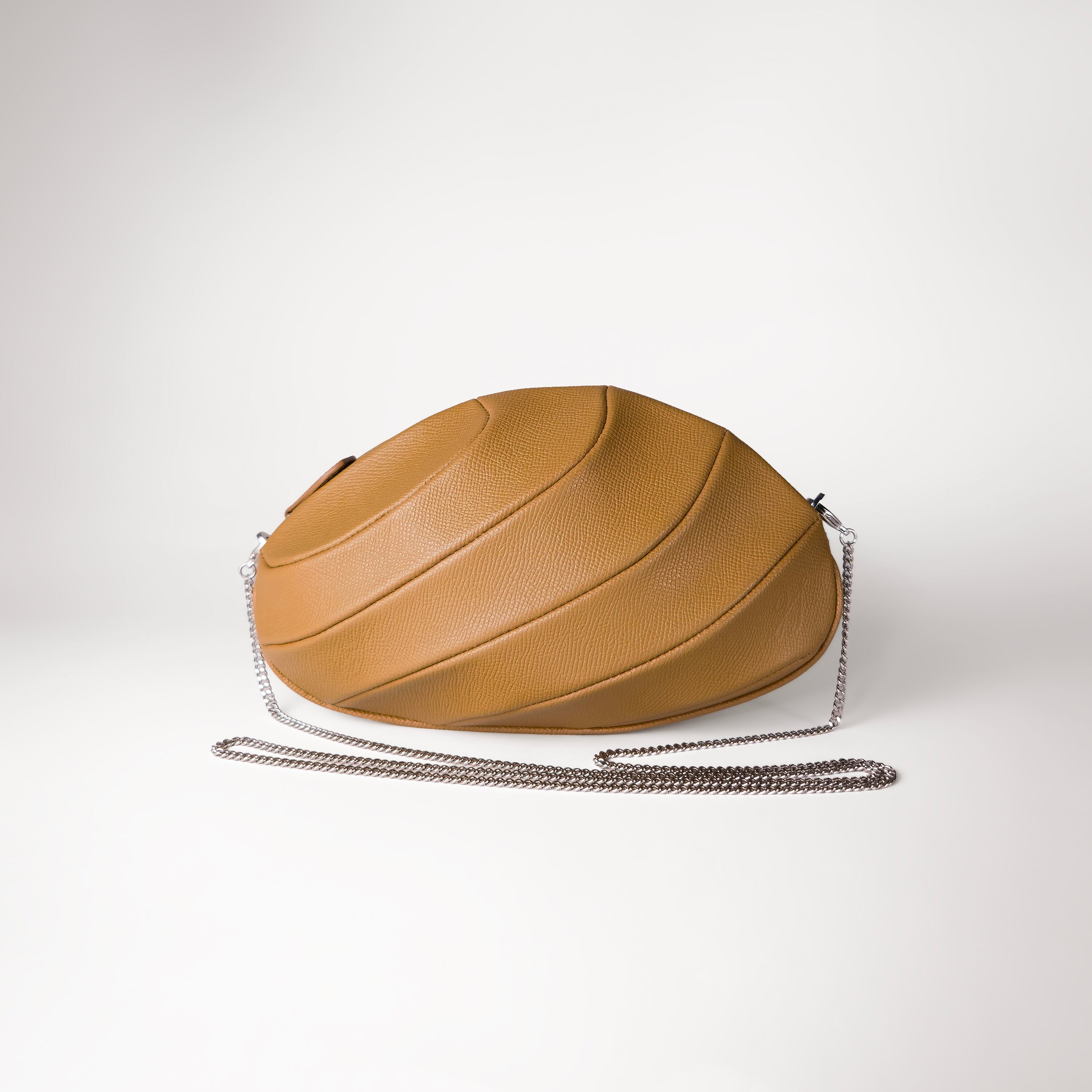 階層のつなぎ目に主張を加えることで生み出された、MITTACAの「レイヤー」パターン。その型をベースにした、楕円形のショルダーバッグです。ストラップを外すことで、クラッチバッグとしてもお使いいただけます。革をあえて逆反りにし、つなぎ合わせていく職人の技術により、躍動感のある独特な表情が生み出されました。