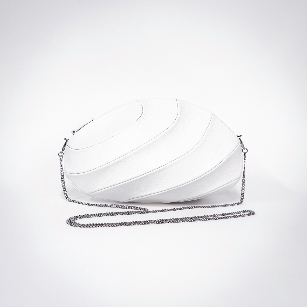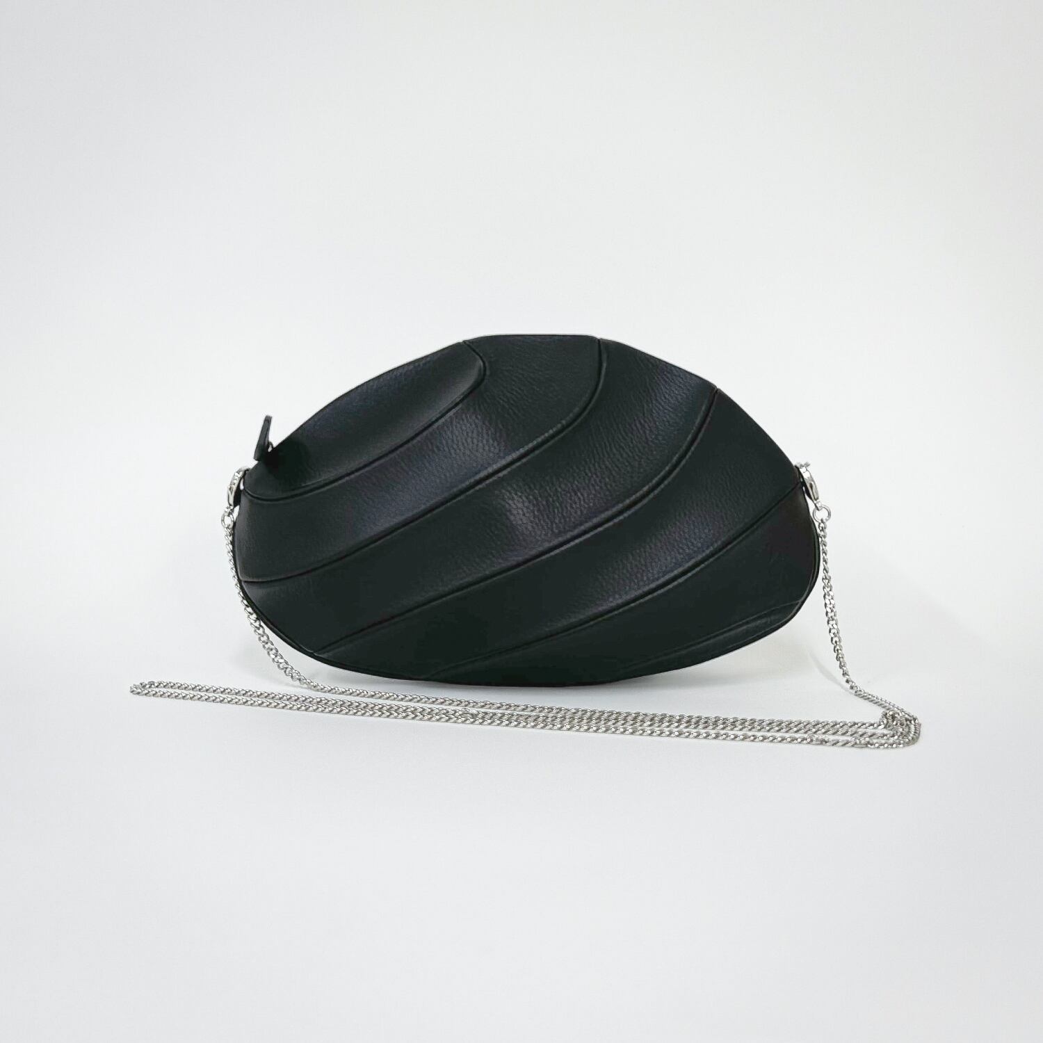 MITTACAの美意識のニュアンスを受け取り、メルティングポット的にミックスさせ、スケッチを描くところから開始。流麗な抽象彫刻やプリミティブなモノリスを創作する意識でフォルムを創造し、まず別素材で立体造形物を製作。そこからパターン(型紙)を起こし、バッグに落とし込んでいく工程へ。ファインアート作品を創作するように、既存の枠にとらわれないデザインを追求しました。
