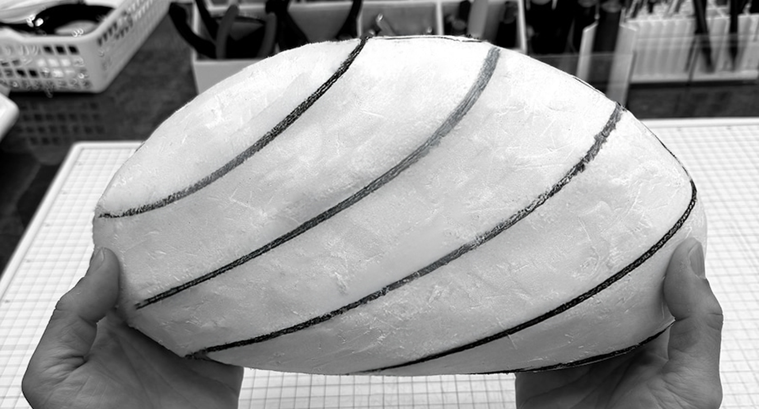 立体造形をもとに、レザーを階層状につないでいくマイスターの試みから始まりました。