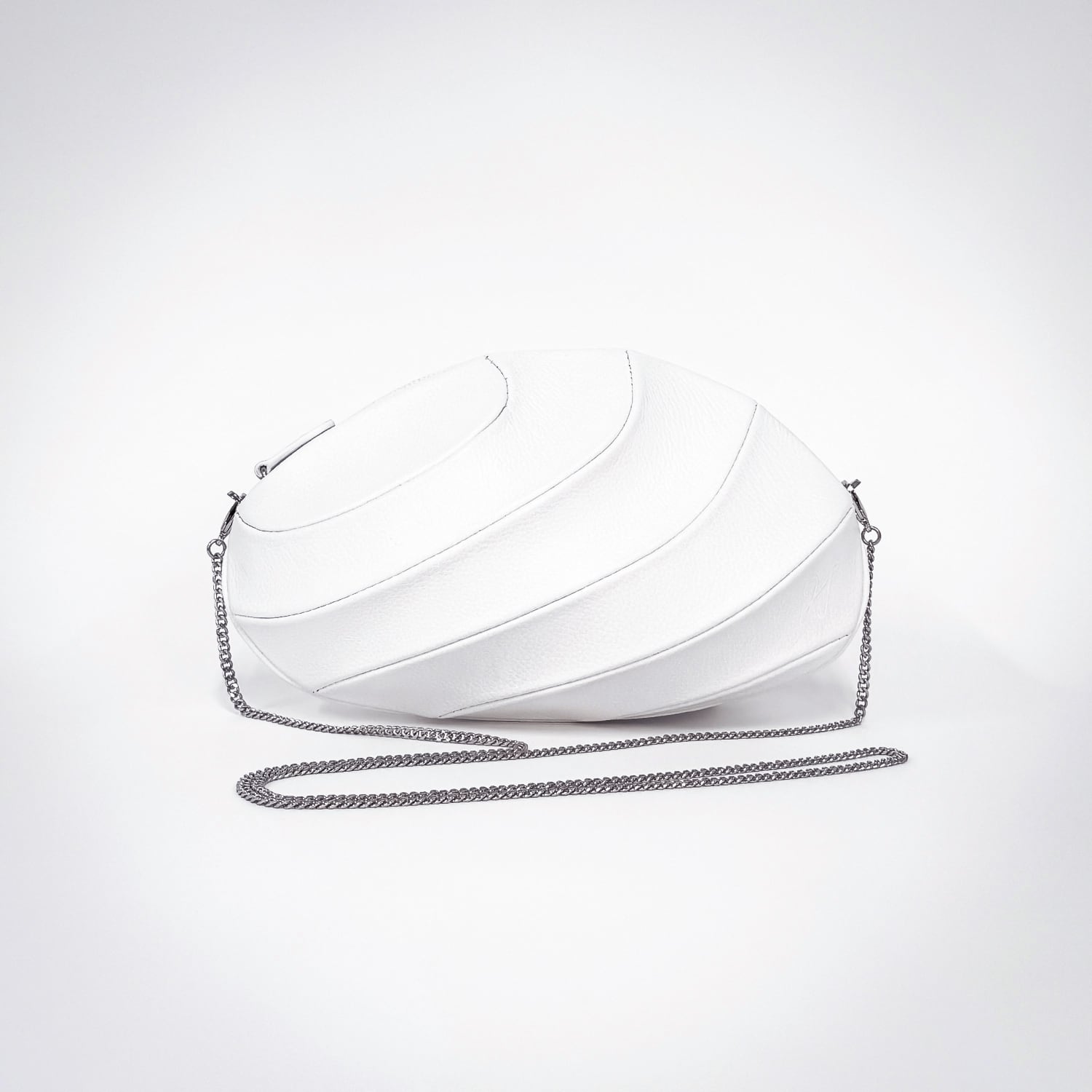 MITTACAの美意識のニュアンスを受け取り、メルティングポット的にミックスさせ、スケッチを描くところから開始。流麗な抽象彫刻やプリミティブなモノリスを創作する意識でフォルムを創造し、まず別素材で立体造形物を製作。そこからパターン(型紙)を起こし、バッグに落とし込んでいく工程へ。ファインアート作品を創作するように、既存の枠にとらわれないデザインを追求しました。