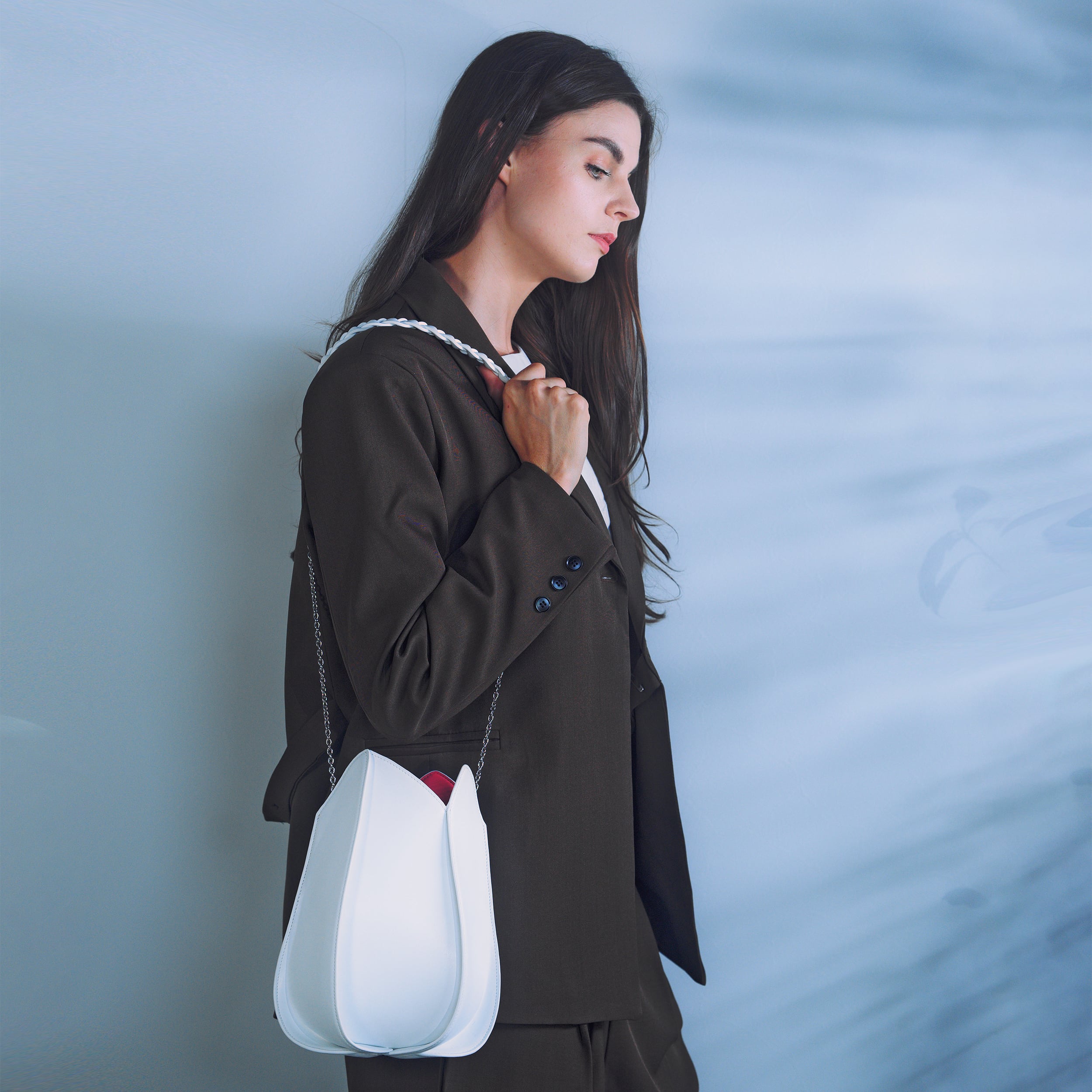 花弁のもつ柔らかな印象を表現しながら、ショルダータイプに相応しい縦長のシェイプに整えました。