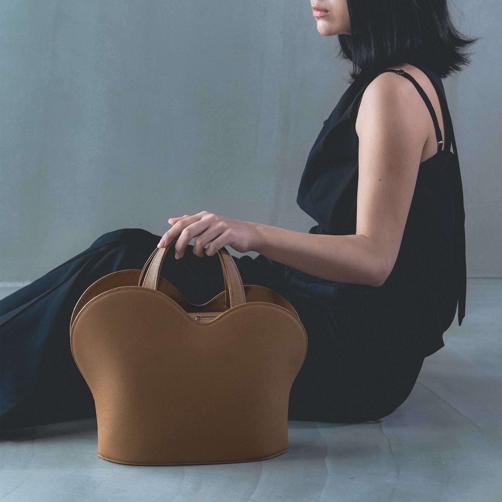 Bayという名の通り、湾曲したカーブ、たおやかなシルエットが目を引くデザインのトートバッグ。ボディには膨らみを出しながら、底面へ向けてシャープになる印象を追求しています。上部のファスナーで開閉し、内装には2つのポケットを備えています。造形を細かく調整しながら、試作を繰り返した職人技が宿ります。